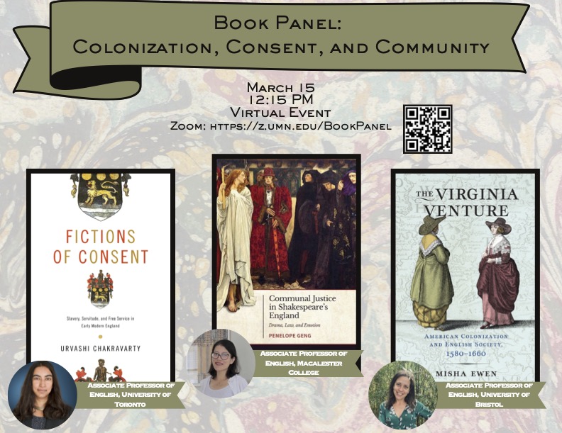 - Spoke with Urvashi Chakravarty and Misha Ewen, “Colonization, Consent, and Community: Book Panel with Three Authors,” UMN Center for Premodern Studies, March 15, 2024.